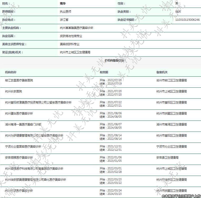 主要執(zhí)業(yè)機構(gòu):杭州革革臻美醫(yī)療美容診所