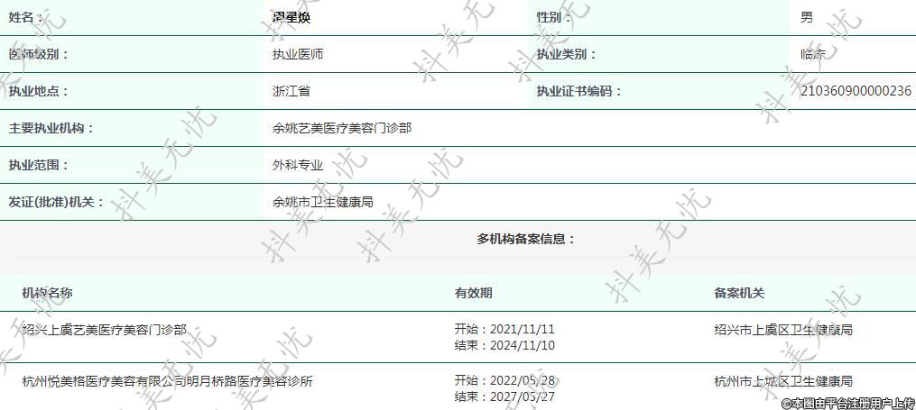 主要執(zhí)業(yè)機(jī)構(gòu):余姚藝美醫(yī)療美容門診部
