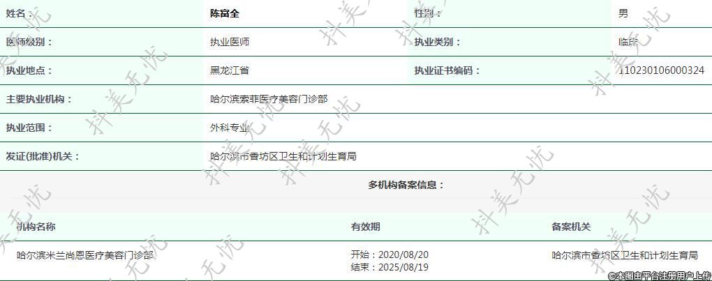 主要執(zhí)業(yè)機構(gòu):哈爾濱索菲醫(yī)療美容門診部
