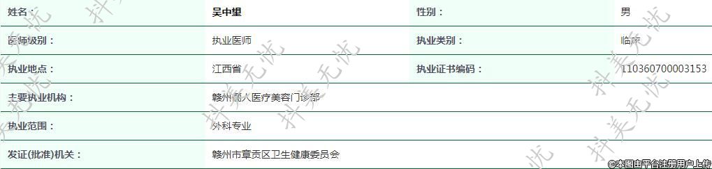 主要執(zhí)業(yè)機(jī)構(gòu):贛州儷人醫(yī)療美容門(mén)診部