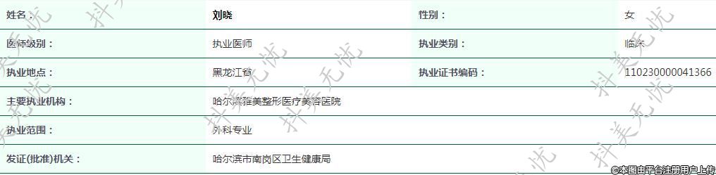 主要執(zhí)業(yè)機(jī)構(gòu):哈爾濱雅美整形醫(yī)療美容醫(yī)院