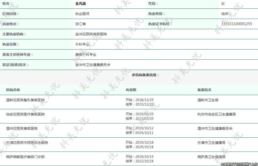 主要執(zhí)業(yè)機(jī)構(gòu):金華芘麗芙美容醫(yī)院