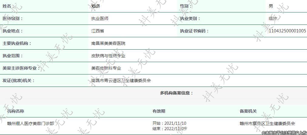 主要執(zhí)業(yè)機構:南昌萊美美容醫(yī)院