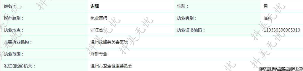 溫州芘麗芙醫(yī)療美容執(zhí)業(yè)醫(yī)師