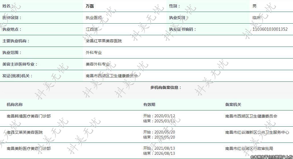 主要執(zhí)業(yè)機(jī)構(gòu):南昌紅蘋果美容醫(yī)院