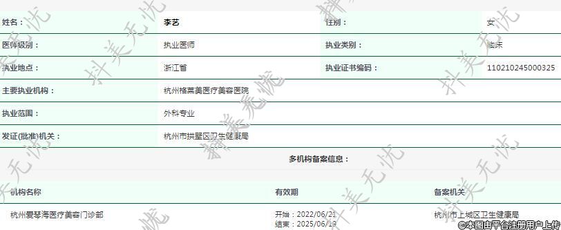 主要執(zhí)業(yè)機構(gòu):杭州格萊美醫(yī)療美容醫(yī)院