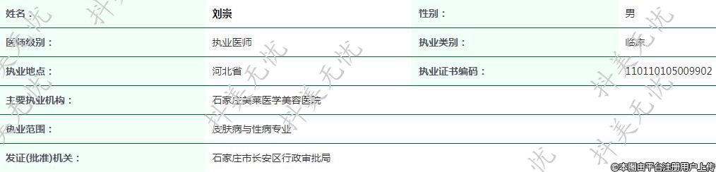 現(xiàn)任石家莊美萊執(zhí)業(yè)醫(yī)師