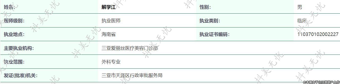 主要執(zhí)業(yè)機構:三亞愛麗絲醫(yī)療美容門診部