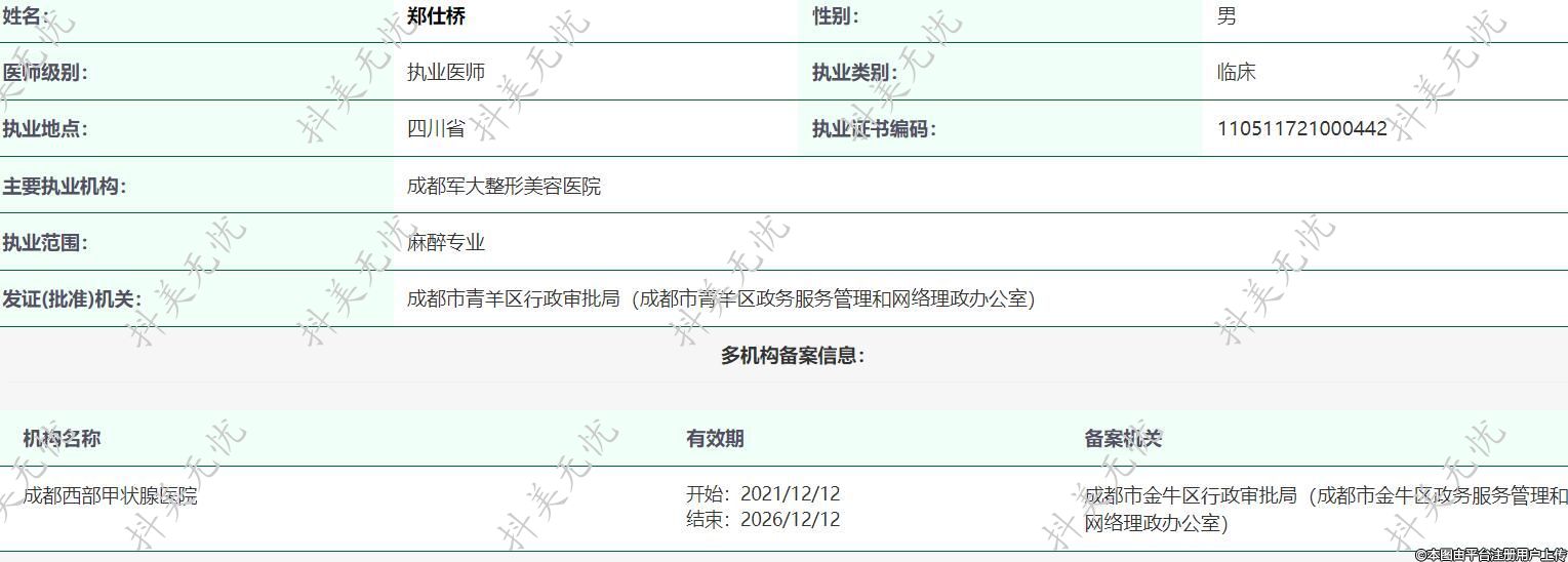 主要執(zhí)業(yè)機構(gòu):成都軍大整形美容醫(yī)院