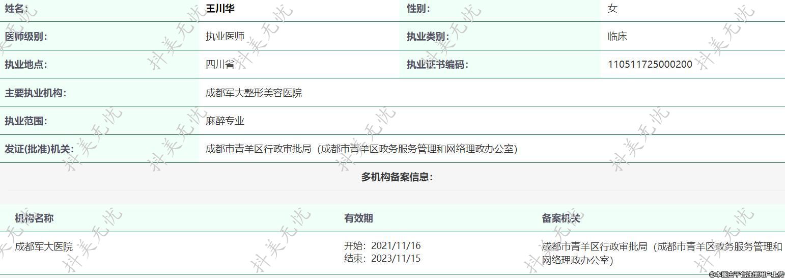 主要執(zhí)業(yè)機構(gòu):成都軍大整形美容醫(yī)院