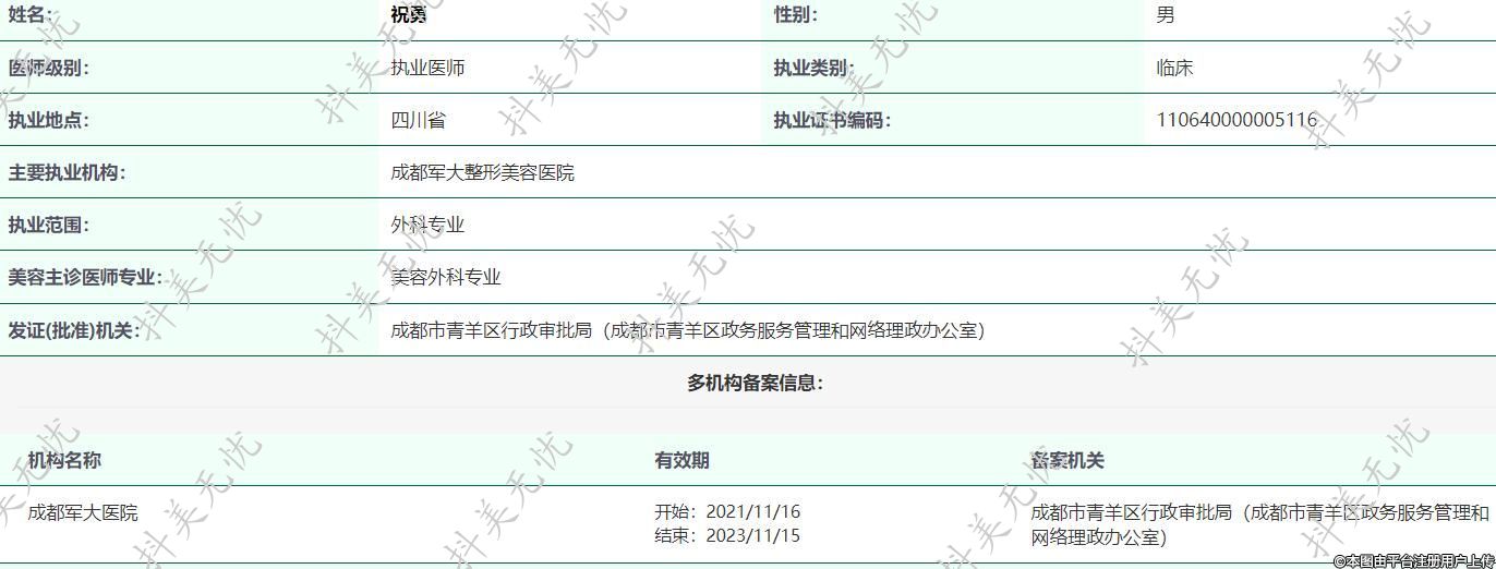 主要執(zhí)業(yè)機構(gòu):成都軍大整形美容醫(yī)院