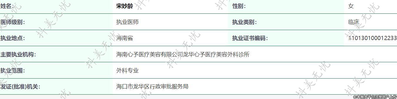 主要執(zhí)業(yè)機(jī)構(gòu):海南心予醫(yī)療美容有限公司龍華心予醫(yī)療美容外科診所