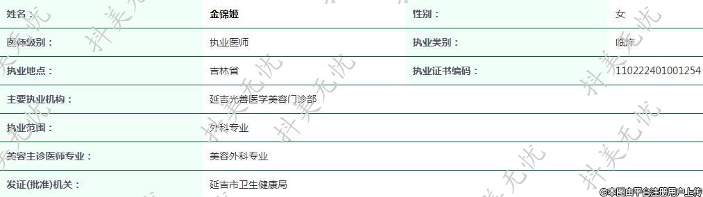 主要執(zhí)業(yè)機(jī)構(gòu):延吉光善醫(yī)學(xué)美容門(mén)診部
