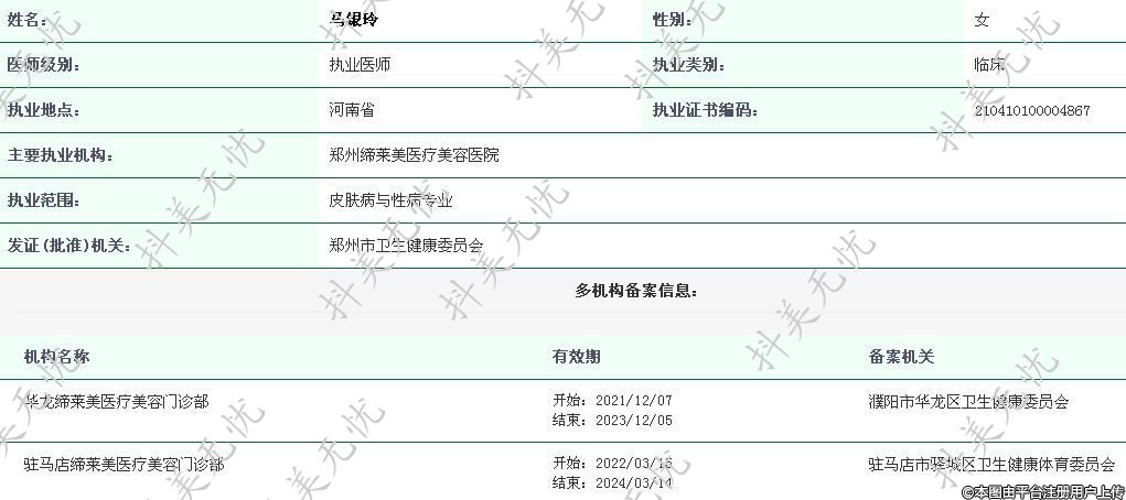 駐馬店締萊美執(zhí)業(yè)醫(yī)師 -