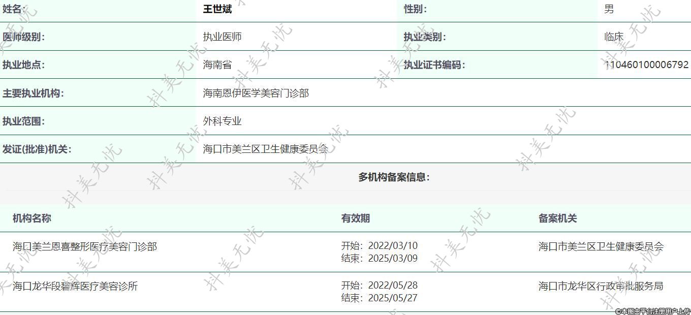 主要執(zhí)業(yè)機構:海南恩伊醫(yī)學美容門診部