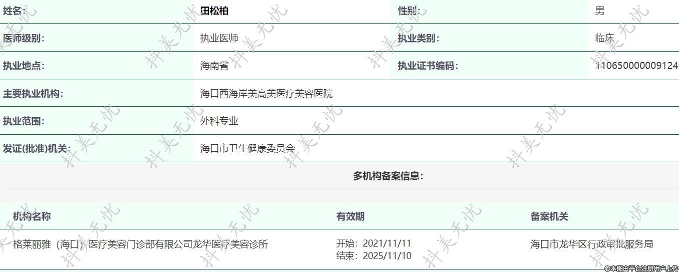 機(jī)構(gòu)名稱:格萊麗雅(??冢┽t(yī)療美容門診部有限公司龍華醫(yī)療美容診所