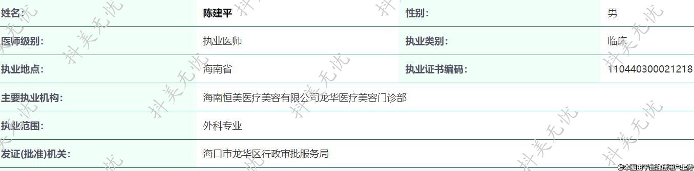 主要執(zhí)業(yè)機構:海南恒美醫(yī)療美容有限公司龍華醫(yī)療美容門診部