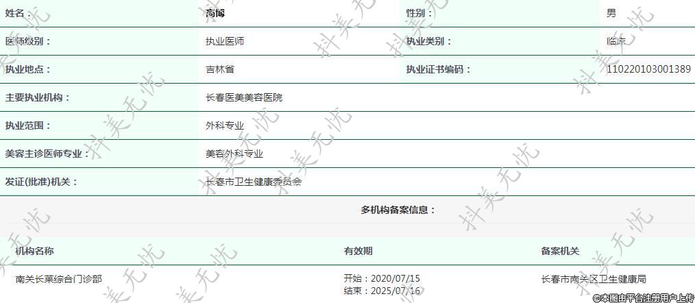 主要執(zhí)業(yè)機(jī)構(gòu):長春醫(yī)美美容醫(yī)院