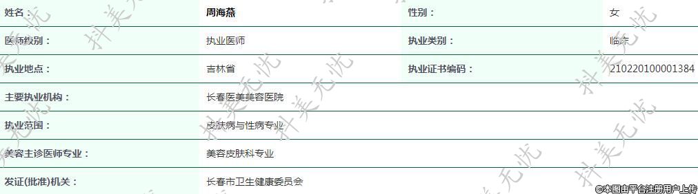 現(xiàn)任長(zhǎng)春醫(yī)美美容醫(yī)院執(zhí)業(yè)醫(yī)師