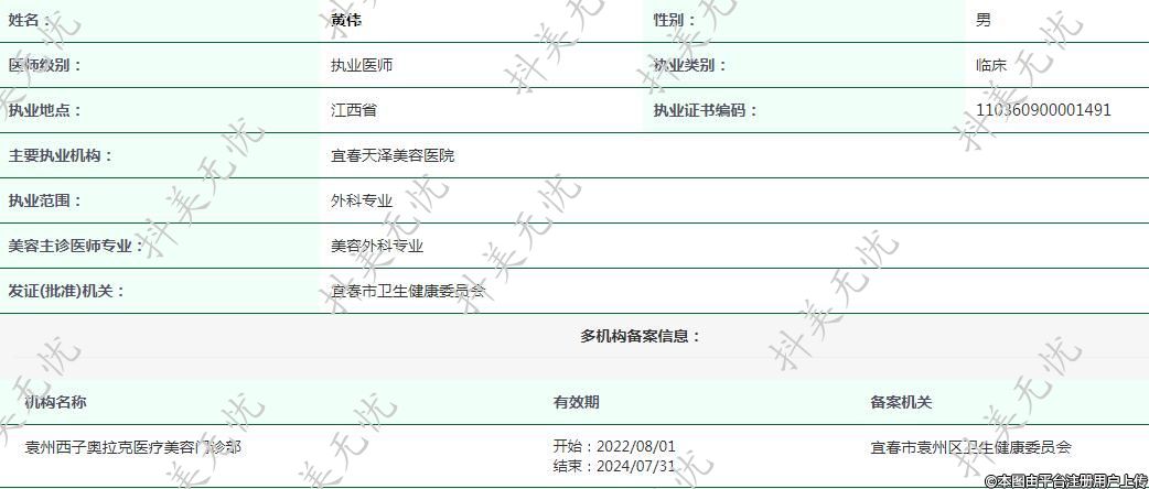 主要執(zhí)業(yè)機構:宜春天澤美容醫(yī)院