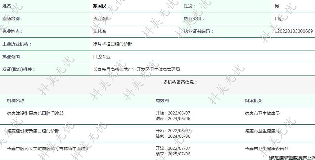 主要執(zhí)業(yè)機(jī)構(gòu):凈月華植口腔門診部