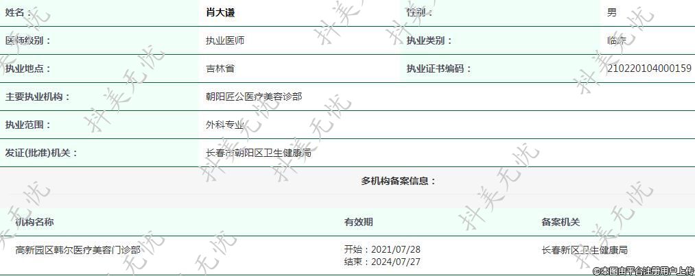 現(xiàn)任長(zhǎng)春匠公醫(yī)療執(zhí)業(yè)醫(yī)師