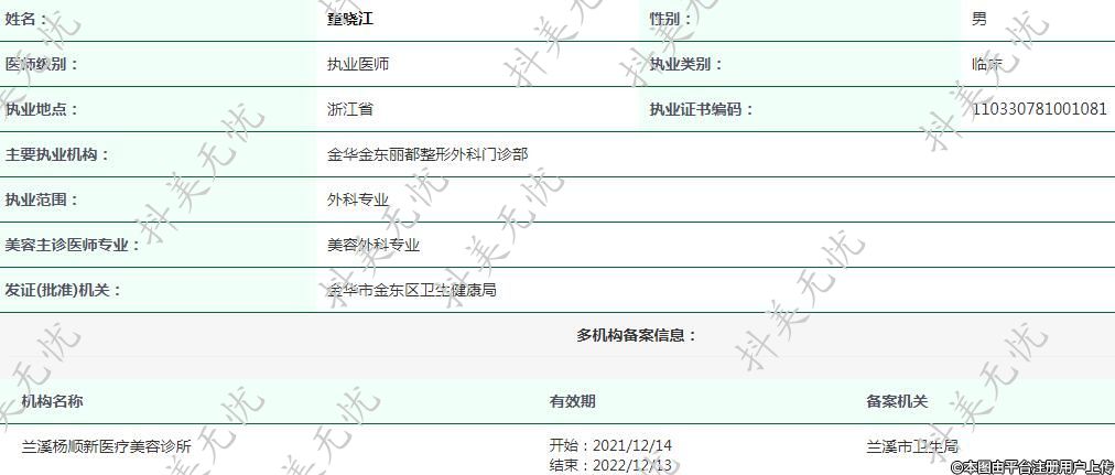金華麗都醫(yī)療美容執(zhí)業(yè)醫(yī)師