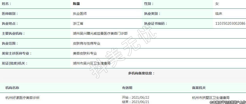 主要執(zhí)業(yè)機(jī)構(gòu):湖州吳興曙光威茲曼醫(yī)療美容門(mén)診部
