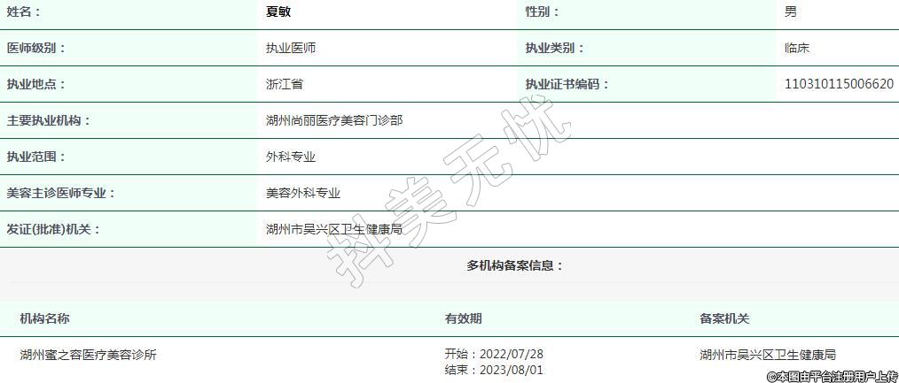 主要執(zhí)業(yè)機(jī)構(gòu):湖州尚麗醫(yī)療美容門(mén)診部