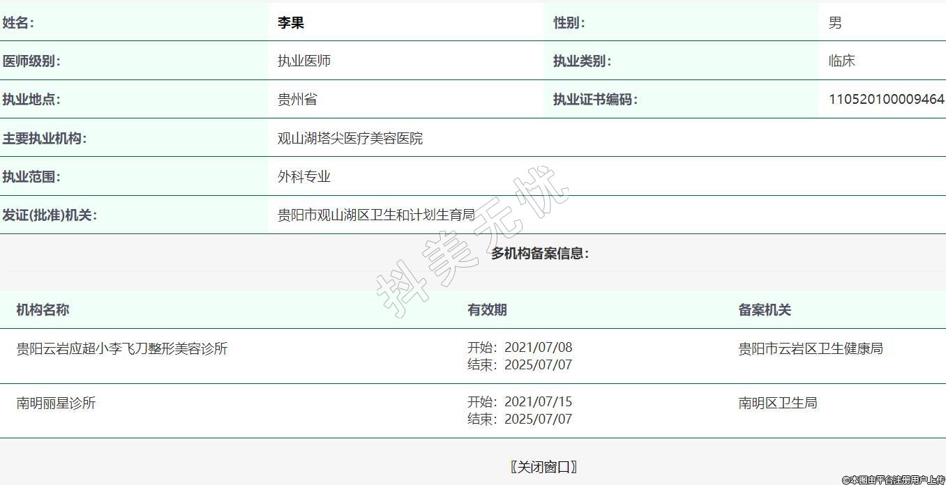機構名稱:貴陽云巖應超小李飛刀整形美容診所