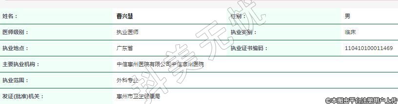 主要執(zhí)業(yè)機(jī)構(gòu):中信惠州醫(yī)院有限公司中信惠州醫(yī)院