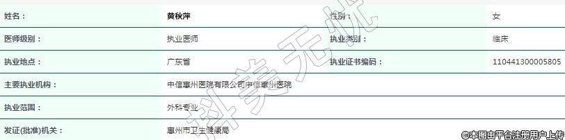 主要執(zhí)業(yè)機(jī)構(gòu):中信惠州醫(yī)院有限公司中信惠州醫(yī)院