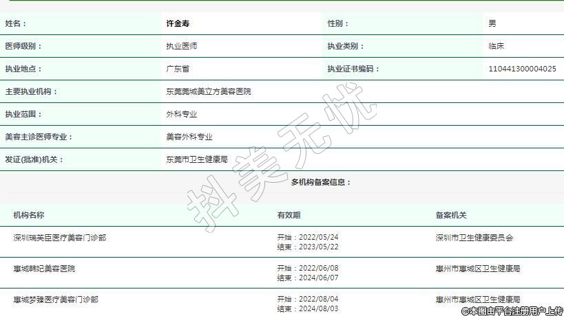 主要執(zhí)業(yè)機(jī)構(gòu):東莞莞城美立方美容醫(yī)院