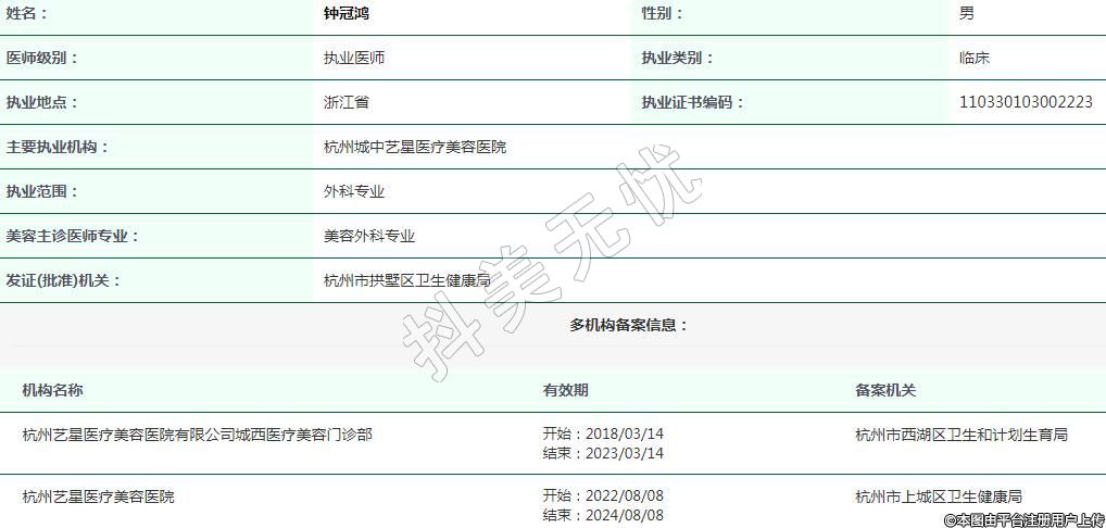 杭州藝星醫(yī)療美容執(zhí)業(yè)醫(yī)師