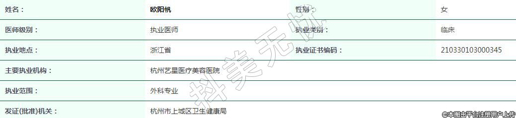 主要執(zhí)業(yè)機構(gòu):杭州藝星醫(yī)療美容醫(yī)院
