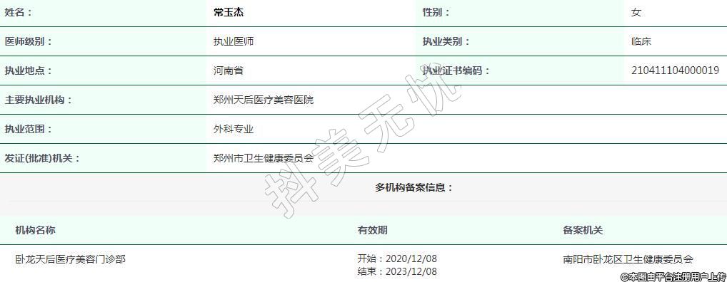 主要執(zhí)業(yè)機(jī)構(gòu):鄭州天后醫(yī)療美容醫(yī)院