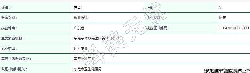 主要執(zhí)業(yè)機(jī)構(gòu):東莞東城華美醫(yī)療美容門診部