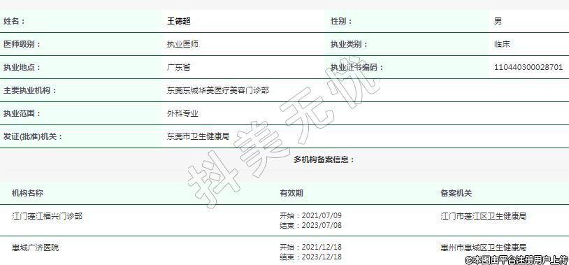 主要執(zhí)業(yè)機(jī)構(gòu):東莞東城華美醫(yī)療美容門診部