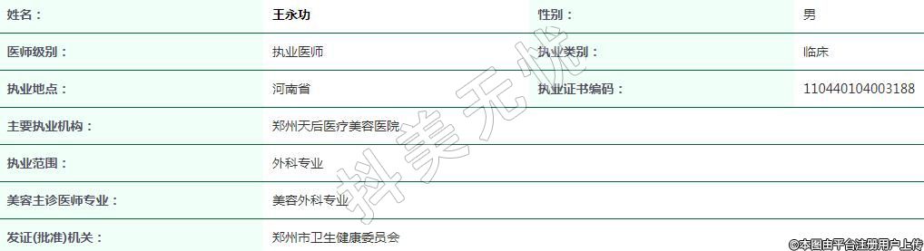 主要執(zhí)業(yè)機構(gòu):鄭州天后醫(yī)療美容醫(yī)院