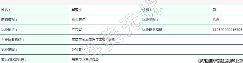 主要執(zhí)業(yè)機(jī)構(gòu):東莞東城華美醫(yī)療美容門診部