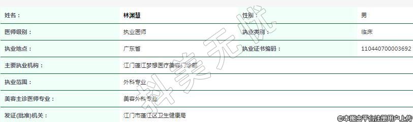 主要執(zhí)業(yè)機構(gòu):江門蓬江夢想醫(yī)療美容門診部