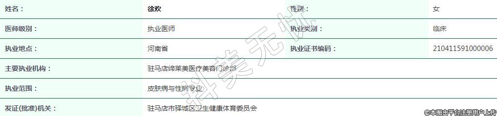 駐馬店締萊美執(zhí)業(yè)醫(yī)師