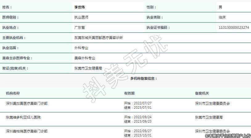 主要執(zhí)業(yè)機(jī)構(gòu):東莞東城天美麗都醫(yī)療美容診所