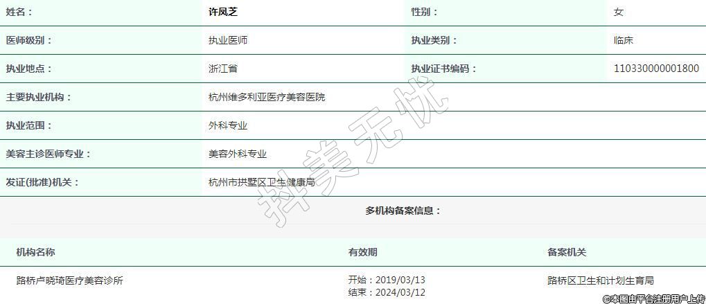 杭州維多利亞醫(yī)療美容執(zhí)業(yè)醫(yī)師