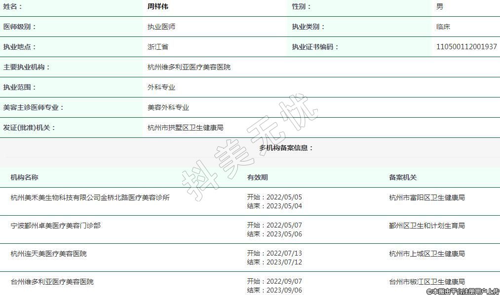 杭州維多利亞醫(yī)療美容執(zhí)業(yè)醫(yī)師