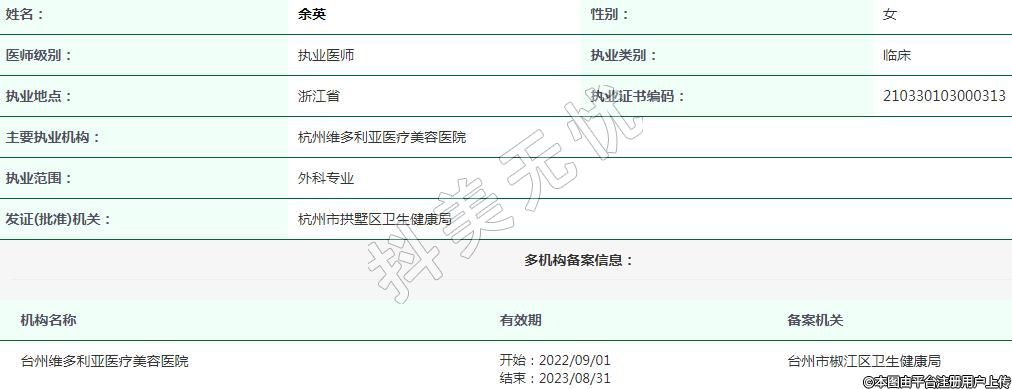 杭州維多利亞醫(yī)療美容執(zhí)業(yè)醫(yī)師