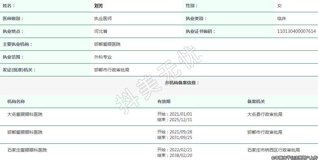 邯鄲愛(ài)眼醫(yī)院執(zhí)業(yè)醫(yī)師