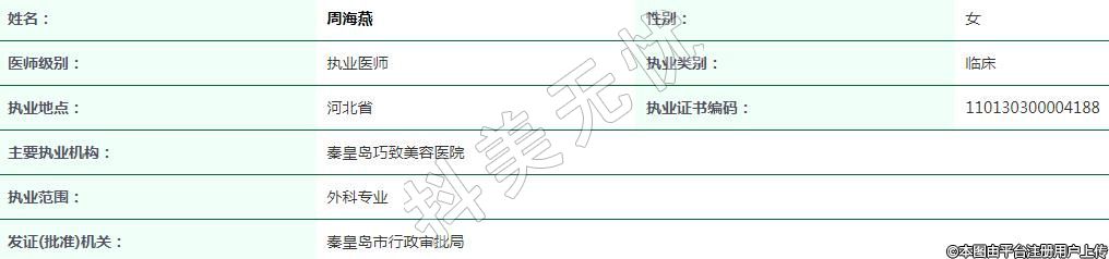 主要執(zhí)業(yè)機構(gòu):秦皇島巧致美容醫(yī)院