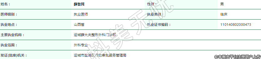 主要執(zhí)業(yè)機構:運城薛大夫整形外科門診部