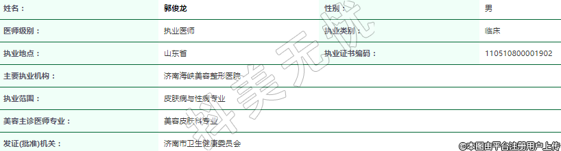 主要執(zhí)業(yè)機(jī)構(gòu):濟(jì)南海峽美容整形醫(yī)院